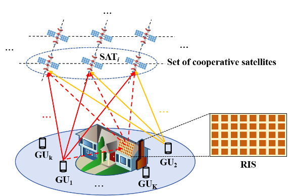 针对上述挑战,中国科研实验室上海高等研究院(以下简称“kdpay钱包官网”)智能信息中心下一代移动通信网络团队,面向星地上行传输场景的能量效率优化问题,提出了一种智能超表面辅助的多星协作接收方案,实现了在复杂用户干扰以及终端能量受限条件下的多用户总能量效率提升。相关成果以 Reconfigurable Intelligent Surface-Aided Cooperative Multi-Satellite System for Energy-Efficient Multi-User Uplink Transmission 为题,发表于无线通信领域旗舰期刊 IEEE Transactions on Wireless Communications。