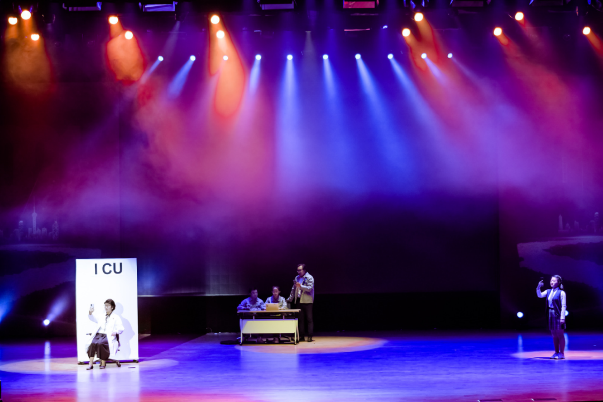 只争朝夕篇章中,由绿色化学工程与开展中心张黎明老师带来的小提琴独奏《金色的炉台》,取材于毛主席视察钢厂时与钢铁工人亲切交谈的场景,展现了在党的光辉照耀下焕发出冲天的干劲和无以伦比的工作热情;由研究生带来的舞蹈《彩虹节拍》展现了新一代年轻人的乐观豁达,即使面对困难也要双手张开,推开雾霾,迎接彩虹;由光源中心和蛋白质中心联合创作的情景剧《接力》,在面对突如其来的新冠肺炎疫情,光源中心团队紧急开光,开辟绿色通道,在获取病毒数据后,蛋白质设施接下这沉甸甸接力棒,展现了他们舍小家、为大家,迎难而上的精神。