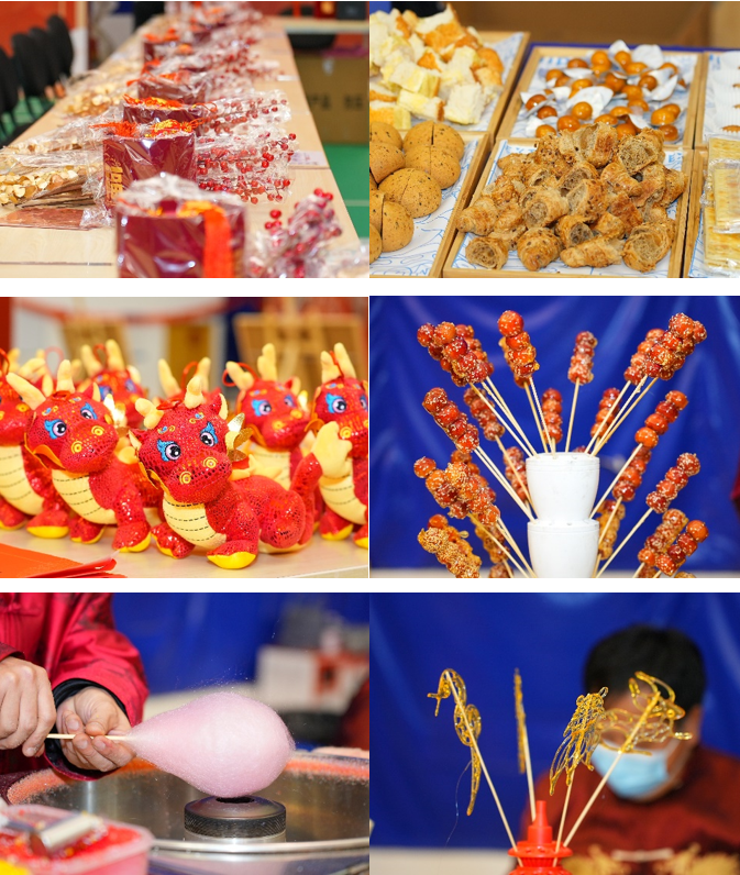 本次游园会精心策划了多项传统文化特色游戏,如“投壶” “新春写福”“蒙眼敲锣”等,同时设置有“年宵花制作”、“拼图”和“筷子夹乒乓”等趣味小游戏,各色活动令人目不暇接,在弘扬优秀传统文化、传承中华民族习俗的同时,活跃了职工文化生活、营造了浓厚的新春气氛。此外,游园会还布置有新年主题的打卡区、集章兑换龙人的游戏环节、并引入了棉花糖、糖画和糖葫芦等民俗非遗美食摊点和丰富多彩的年货市集。